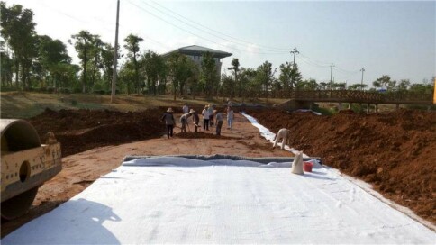 膨潤土防水毯是由兩層非織造布中間夾一層膨潤土經(jīng)針刺、粘合、縫合等制成,具有防水功能,主要用于垃圾填埋場、人工湖、渠道、水池、地下室、地鐵等工程中。膨潤土針刺土工布是一種土工合成材料,具體工藝是在兩層針刺布的中間夾一層膨潤土經(jīng)過刺針的穿刺后連接在一起的。